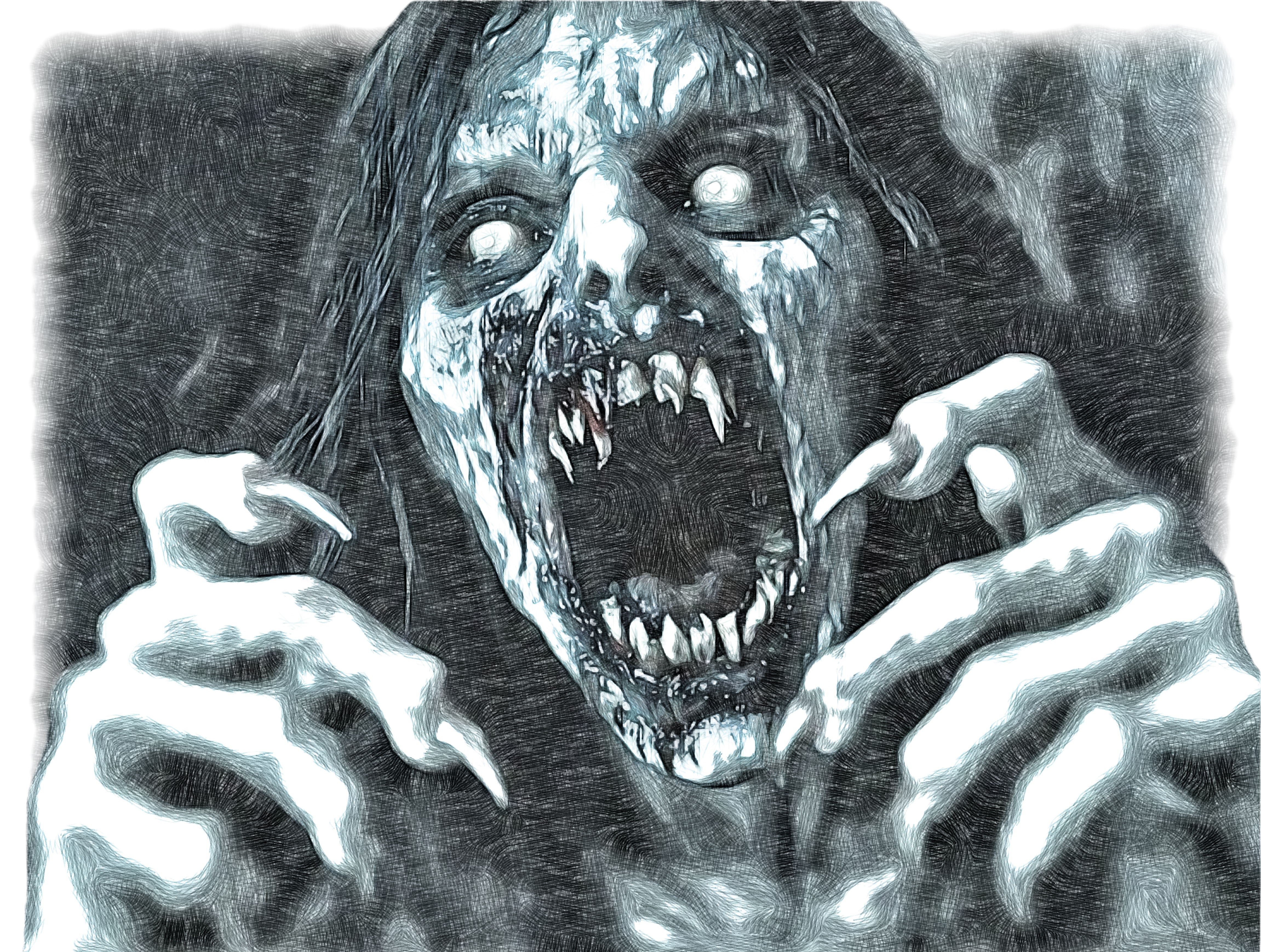 Le Hurlefunèbre est ce qu’il reste d’un être qui a trop longtemps refusé la mort. Sa peau grisâtre colle aux os, ses yeux laiteux ne voient plus vraiment le monde des vivants et sa bouche est devenue une gueule béante hérissée de crocs, faite pour déchirer plutôt que pour parler. Ses doigts se sont allongés en griffes osseuses qui laissent des sillons de chair arrachée à chaque attaque.